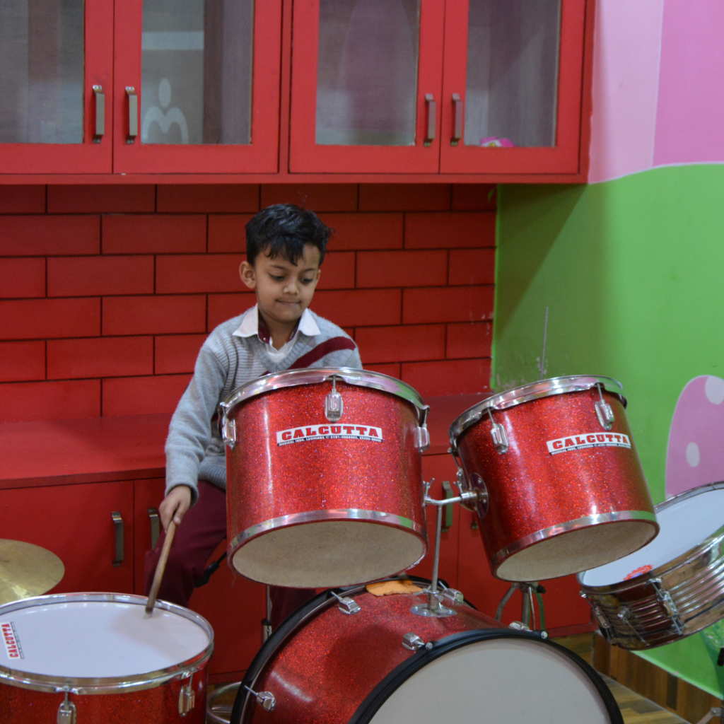 Our music classes with guitar and drum instruction allow children to learn basic techniques, develop rhythm, and express themselves creatively.